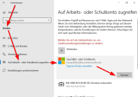 Der Standardweg, um gespeicherte Daten zu löschen ist unter „Einstellungen“ > „Konten“ > „Auf Arbeits- oder Schulkonto zugreifen“ auf das betreffende Konto zu klicken und das Konto dann zu trennen.